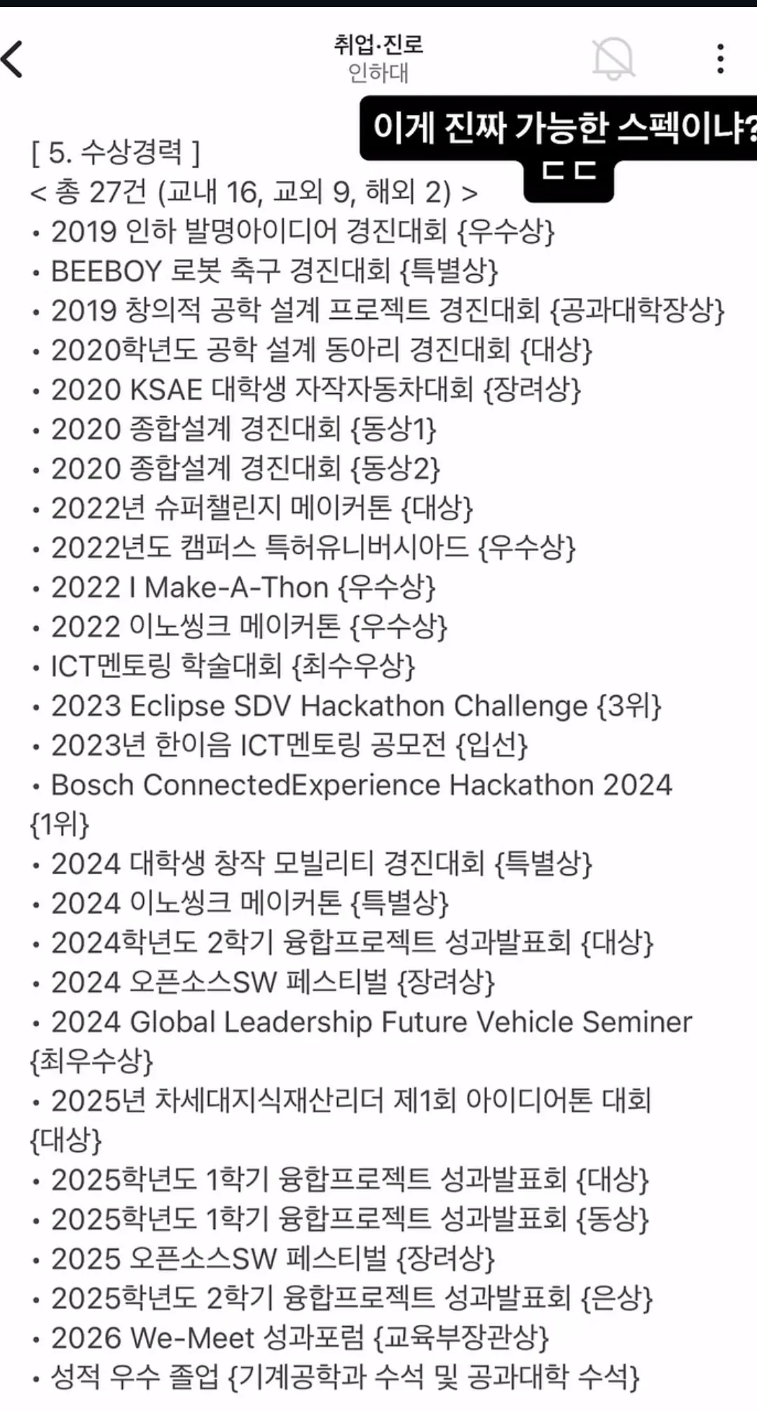 저게 사람이 쌓을 수 있는 스펙이냐? ㄷㄷㄷㄷㄷ